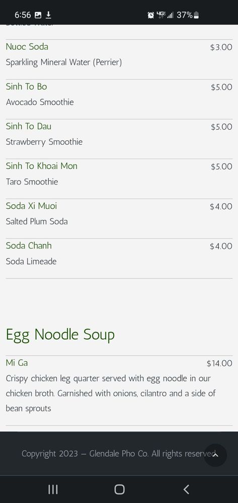 Glendale Pho Co, located at 102 S Glendale Ave in Glendale, CA, offers a variety of Vietnamese dishes with options for vegans and vegetarians. Their menu includes traditional items like Pho Dac Biet, Make Your Own Beef Pho, and Mi Ga Egg Noodle Soup. Customers rave about the flavorful broth and generous portions. Reviewers praise the fresh banh mi sandwiches and crispy spring rolls, highlighting the friendly service and affordable prices. Whether dining in for lunch or dinner, or ordering takeout, Glendale Pho Co provides a cozy and inviting atmosphere. With a focus on quality ingredients and authentic flavors, this restaurant is a must-visit for lovers of Vietnamese cuisine.